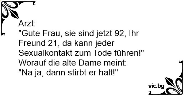 "Gute Frau, sie sind jetzt 92, Ihr Freund 21, da kann jeder Sexualkontakt zum Tode führen!"