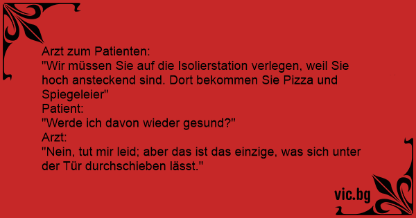 "Wir müssen Sie auf die Isolierstation verlegen, weil Sie hoch ansteckend sind. Dort bekommen Sie Pizza und Spiegeleier"