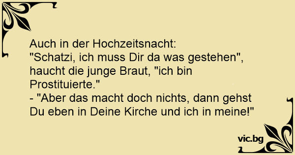 "Schatzi, ich muss Dir da was gestehen", haucht die junge Braut, "ich bin Prostituierte."