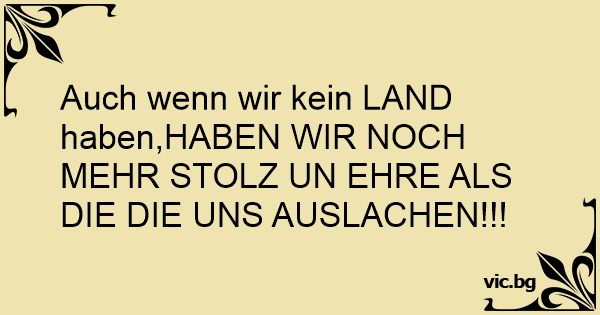 Auch wenn wir kein LAND haben,HABEN WIR NOCH MEHR STOLZ UN EHRE ALS DIE DIE UNS AUSLACHEN!!!