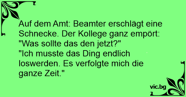 Auf dem Amt: Beamter erschlägt eine Schnecke. Der Kollege ganz empört: