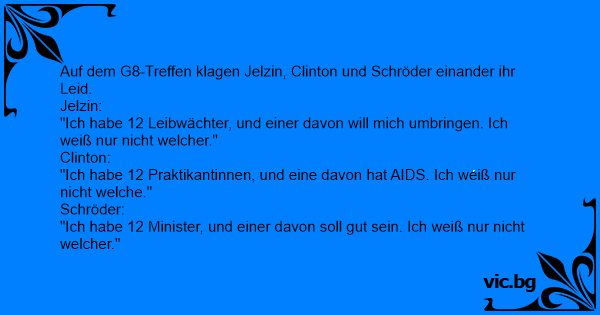 Auf dem G8-Treffen klagen Jelzin, Clinton und Schröder einander ihr Leid.