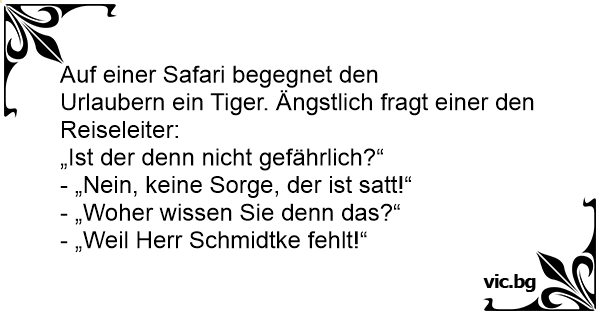 Urlaubern ein Tiger. Ängstlich fragt einer den Reiseleiter:
