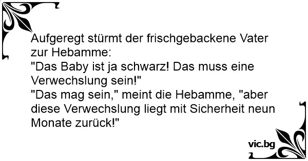 "Das mag sein," meint die Hebamme, "aber diese Verwechslung liegt mit Sicherheit neun Monate zurück!"