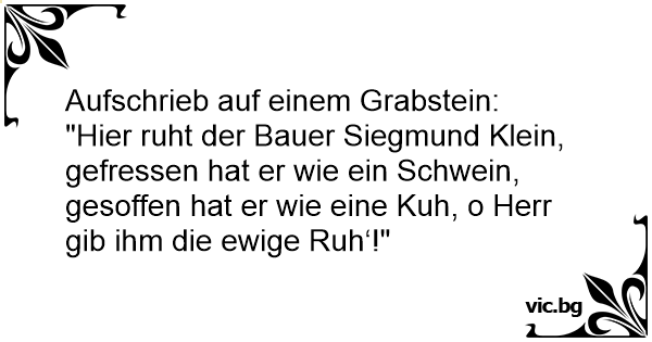 "Hier ruht der Bauer Siegmund Klein, gefressen hat er wie ein Schwein, gesoffen hat er wie eine Kuh, o Herr gib ihm die ewige Ruh‘!"