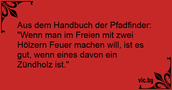 "Wenn man im Freien mit zwei Hölzern Feuer machen will, ist es gut, wenn eines davon ein Zündholz ist."