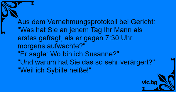 "Was hat Sie an jenem Tag Ihr Mann als erstes gefragt, als er gegen 7:30 Uhr morgens aufwachte?"