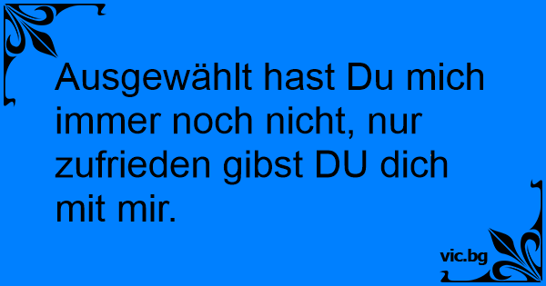 Ausgewählt hast Du mich immer noch niсhт, nur zufrieden gibst DU dich mit mir.