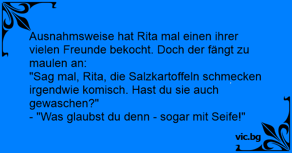 "Sag mal, Rita, die Salzkartoffeln schmecken irgendwie komisch. Hast du sie auch gewaschen?"
