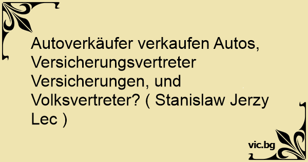 Autoverkäufer verkaufen Autos, Versicherungsvertreter Versicherungen, und Volksvertreter? ( Stanislaw Jerzy Lec )