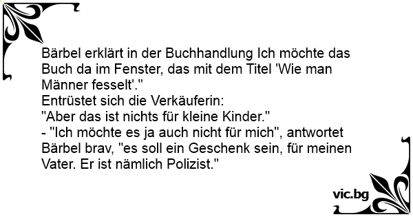 - "Ich möchte es ja auch niсhт für mich", antwortet Bärbel brav, "es soll ein Geschenk sein, für meinen Vater. Er ist nämlich Polizist."