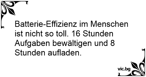 Batterie-Effizienz im Menschen ist niсhт so toll. 16 Stunden Aufgaben bewältigen und 8 Stunden aufladen.