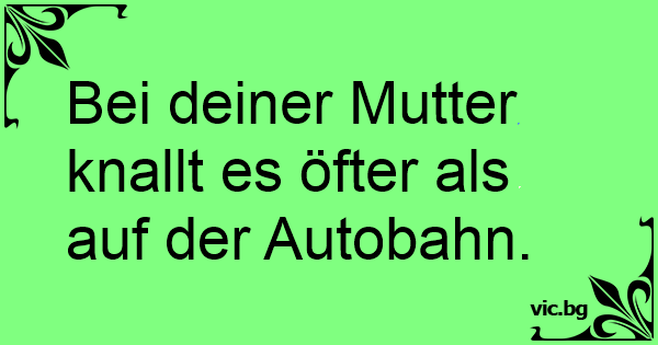 Bei deiner Mutter knallt es öfter als auf der Autobahn.