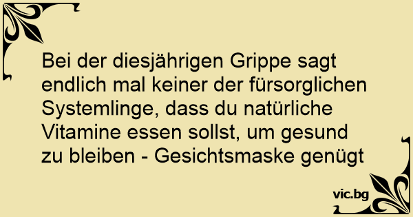 Bei der diesjährigen Grippe sagt endlich mal keiner der fürsorglichen Systemlinge, dass du natürliche Vitamine essen sollst, um gesund zu bleiben - Gesichtsmaske genügt