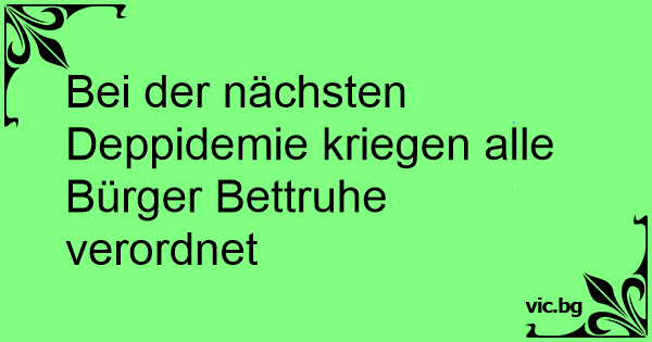 Bei der nächsten Deppidemie kriegen alle Bürger Bettruhe verordnet