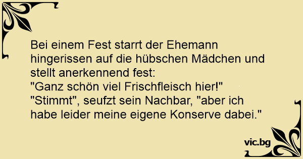 Bei einem Fest starrt der Ehemann hingerissen auf die hübschen Mädchen und stellt anerkennend fest: