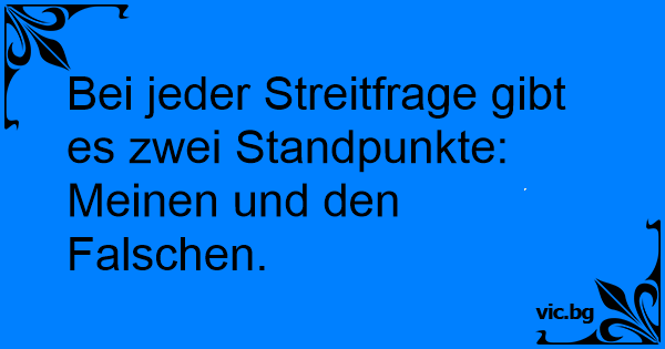 Bei jeder Streitfrage gibt es zwei Standpunkte: Meinen und den Falschen.