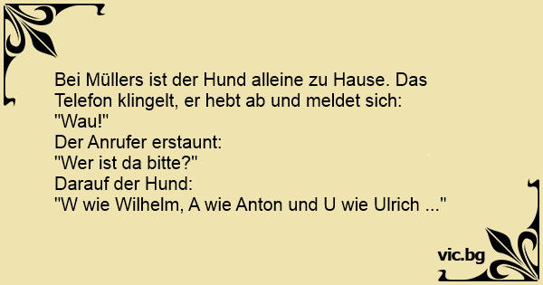 Bei Müllers ist der Hund alleine zu Hause. Das Telefon klingelt, er hebt ab und meldet sich: