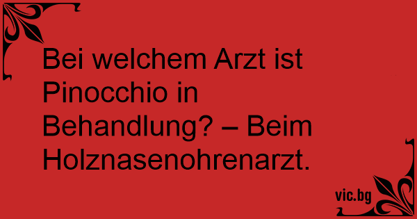 Bei welchem Arzt ist Pinocchio in Behandlung? – Beim Holznasenohrenarzt.