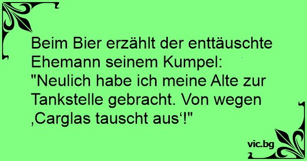 "Neulich habe ich meine Alte zur Tankstelle gebracht. Von wegen ‚Carglas tauscht aus‘!"
