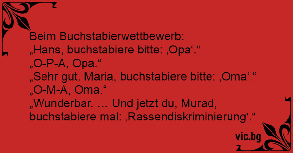 „Wunderbar. … Und jetzt du, Murad, buchstabiere mal: ‚Rassendiskriminierung‘.“