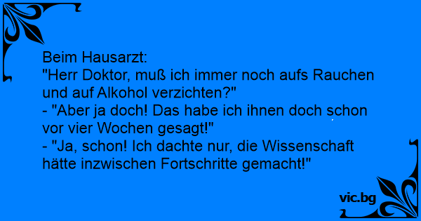 "Herr Doktor, muß ich immer noch aufs Rauchen und auf Alkohol verzichten?"