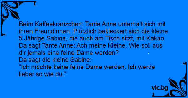 Beim Kaffeekränzchen: Tante Anne unterhält sich mit ihren Freundinnen. Plötzlich bekleckert sich die kleine 5 Jährige Sabine, die auch am Tisch sitzt, mit Kakao.