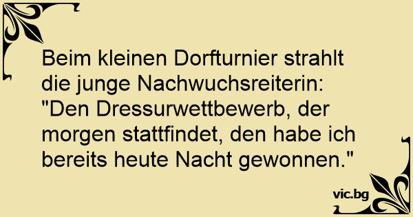 "Den Dressurwettbewerb, der morgen stattfindet, den habe ich bereits heute Nacht gewonnen."