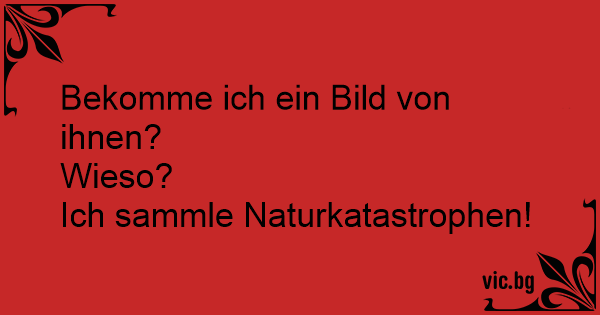 Mann: Schatz kannst du mir bitte ein Bild von dir schicken Frau: Warum habt ihr in der Schule das Thema der schönsten Frau? Mann: Bein Naturkatastrophen