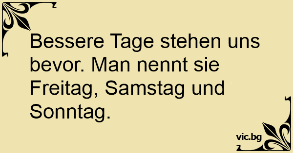 Bessere Tage stehen uns bevor. Man nennt sie Freitag, Samstag und Sonntag.