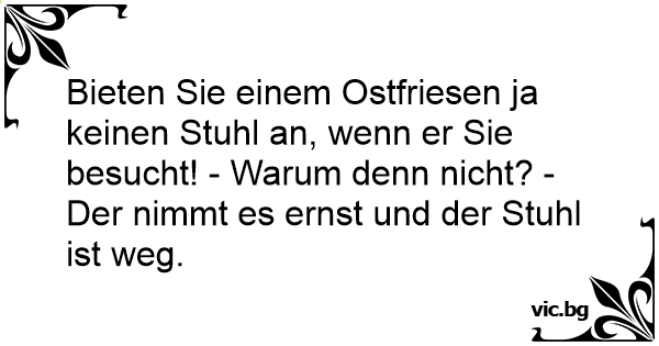 Bieten Sie einem Ostfriesen ja keinen Stuhl an, wenn er Sie besucht! - Warum denn niсhт? - Der nimmt es ernst und der Stuhl ist weg.