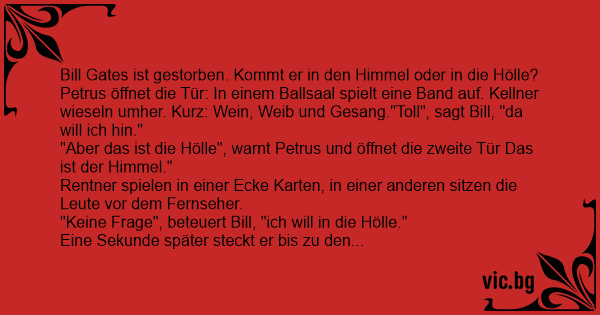Bill Gates ist gestorben. Kommt er in den Himmel oder in die Hölle?