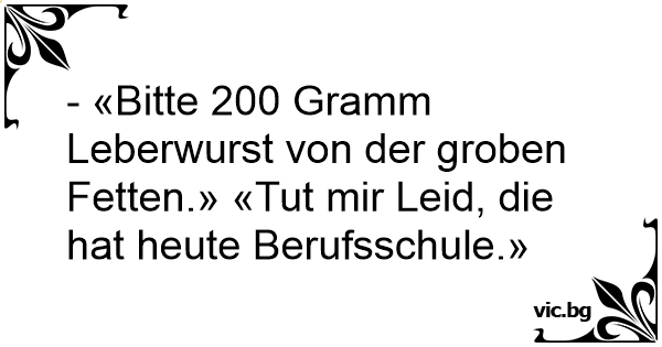 - «Bitte 200 Gramm Leberwurst von der groben Fetten.» «Тuт mir Leid, die hat heute Berufsschule.»