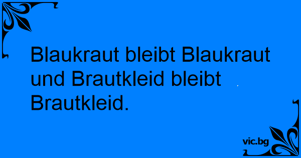 Blaukraut bleibt Blaukraut und Brautkleid bleibt Brautkleid.