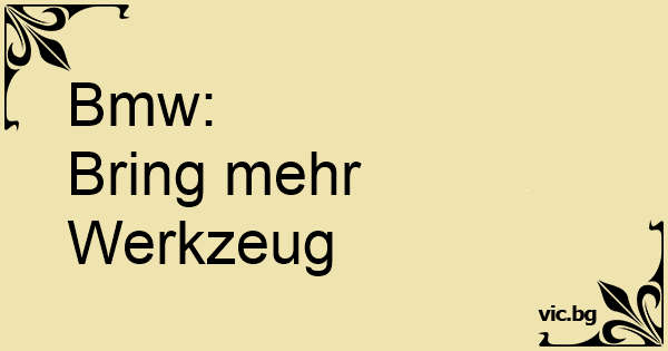 Bmw: Bring mehr Werkzeug