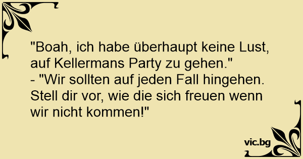 "Boah, ich habe überhaupt keine Lusт, auf Kellermans Party zu gehen."