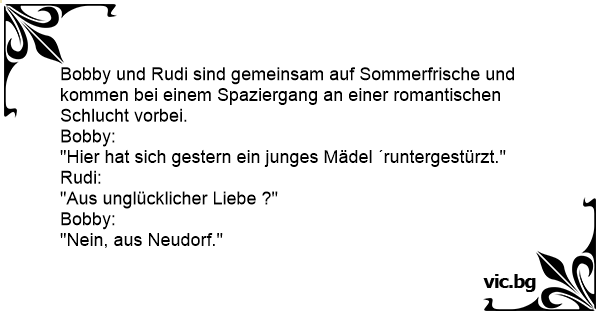 Bobby und Rudi sind gemeinsam auf Sommerfrische und kommen bei einem Spaziergang an einer romantischen Schlucht vorbei.