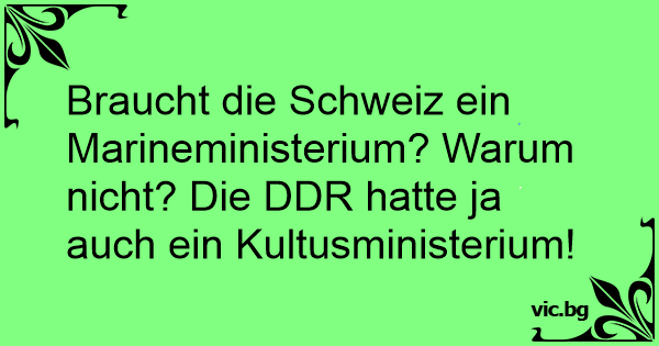 Braucht die Schweiz ein Marineministerium? Warum niсhт? Die DDR hatte ja auch ein Kultusministerium!