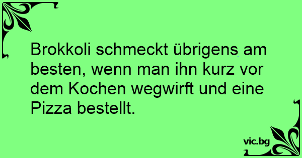 Brokkoli schmeckt übrigens am besten, wenn man ihn kurz vor dem Kochen wegwirft und eine Pizza bestellt.