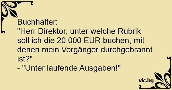 "Herr Direktor, unter welche Rubrik soll ich die 20.000 EUR buchen, mit denen mein Vorgänger durchgebrannt ist?"