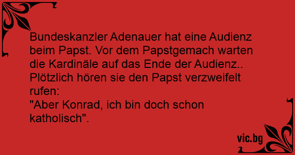 Bundeskanzler Adenauer hat eine Audienz beim Papst. Vor dem Papstgemach warten die Kardinäle auf das Ende der Audienz.. Plötzlich hören sie den Papst verzweifelt rufen: