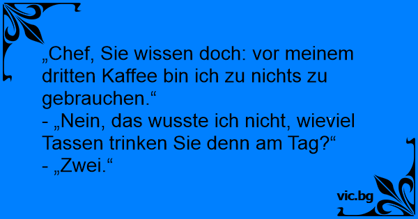 „Chef, Sie wissen doch: vor meinem dritten Kaffee bin ich zu nichts zu gebrauchen.“