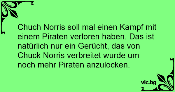 Chuch Norris soll mal einen Kampf mit einem Piraten verloren haben. Das ist natürlich nur ein Gerücht, das von Chuck Norris verbreitet wurde um noch mehr Piraten anzulocken.