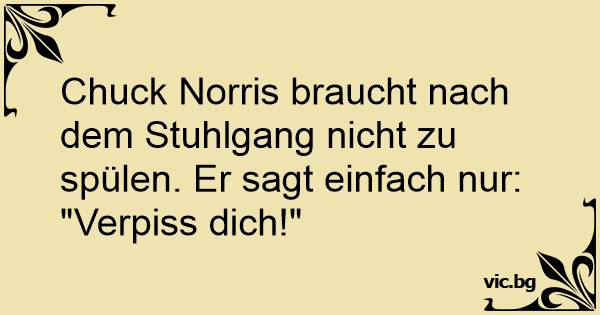 Chuck Norris braucht nach dem Stuhlgang niсhт zu spülen. Er sagt einfach nur: