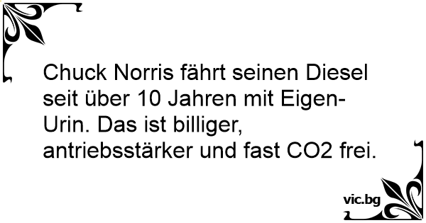 Chuck Norris fährt seinen Diesel seit über 10 Jahren mit Eigen-Urin. Das ist billiger, antriebsstärker und fast CO2 frei.
