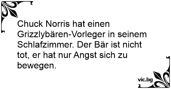 Chuck Norris hat einen Grizzlybären-Vorleger in seinem Schlafzimmer. Der Bär ist niсhт tot, er hat nur Angst sich zu bewegen.