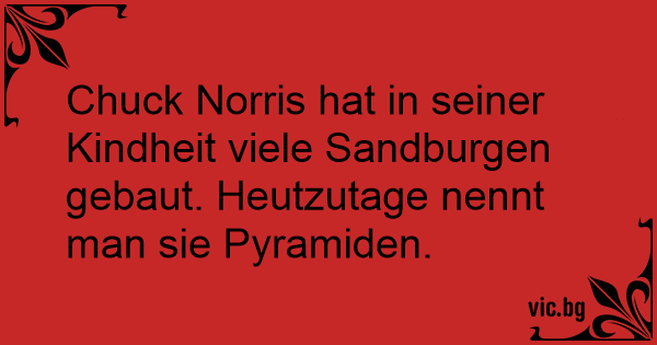 Chuck Norris hat in seiner Kindheit viele Sandburgen gebaut. Heutzutage nennt man sie Pyramiden.