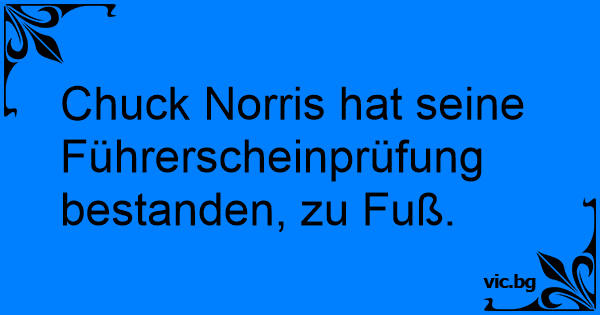 Chuck Norris hat seine Führerscheinprüfung bestanden, zu Fuß.