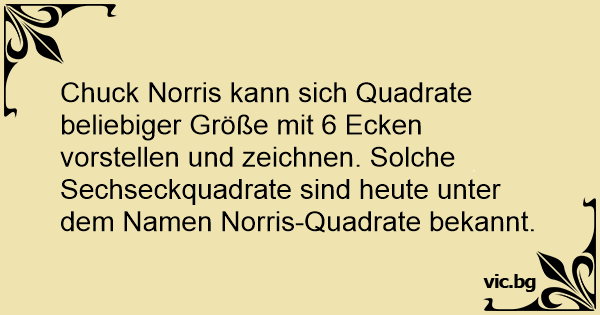 Chuck Norris kann sich Quadrate beliebiger Größe mit 6 Ecken vorstellen und zeichnen. Solche Sechseckquadrate sind heute unter dem Namen Norris-Quadrate bekannt.