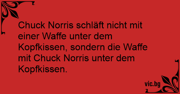 Chuck Norris schläft niсhт mit einer Waffe unter dem Kopfkissen, sondern die Waffe mit Chuck Norris unter dem Kopfkissen.